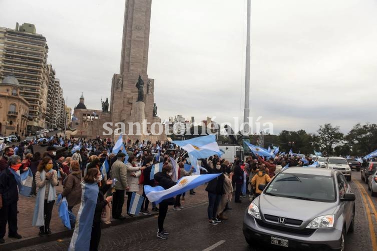 En Rosario el lugar de encuentro fue el Monumento a la Bandera, donde entidades ruralistas y ciudadanos tocaron bocina en una larga caravana de autos por la avenida Belgrano, donde más temprano se había realizado el acto por el Día de la Bandera.