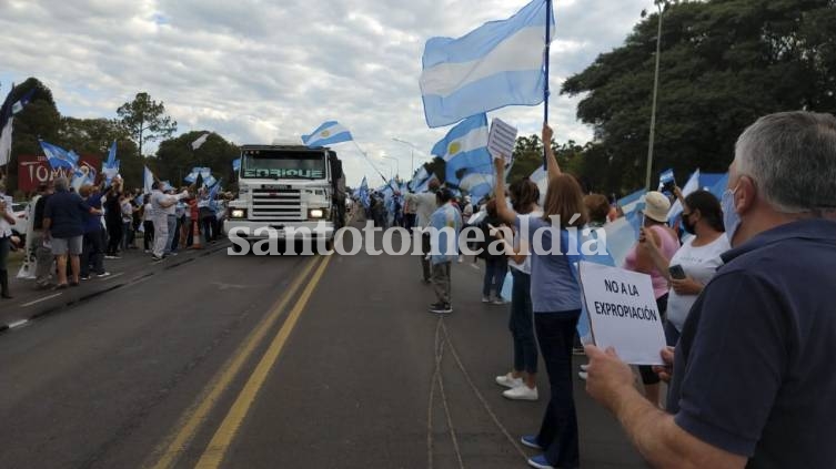 Pese a las medidas de aislamiento y distanciamiento vigentes, agrupaciones de autoconvocados y entidades agropecuarias realizaron un "banderazo" en contra de la intención del Gobierno de expropiar a la firma agroexportadora.