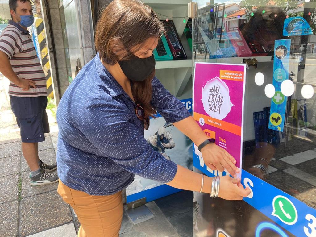 Esta mañana, un equipo de la Coordinación de Políticas de Género recorrió las dependencias municipales y áreas comerciales de la ciudad, distribuyendo material informativo en el marco de la campaña "No estás sola".