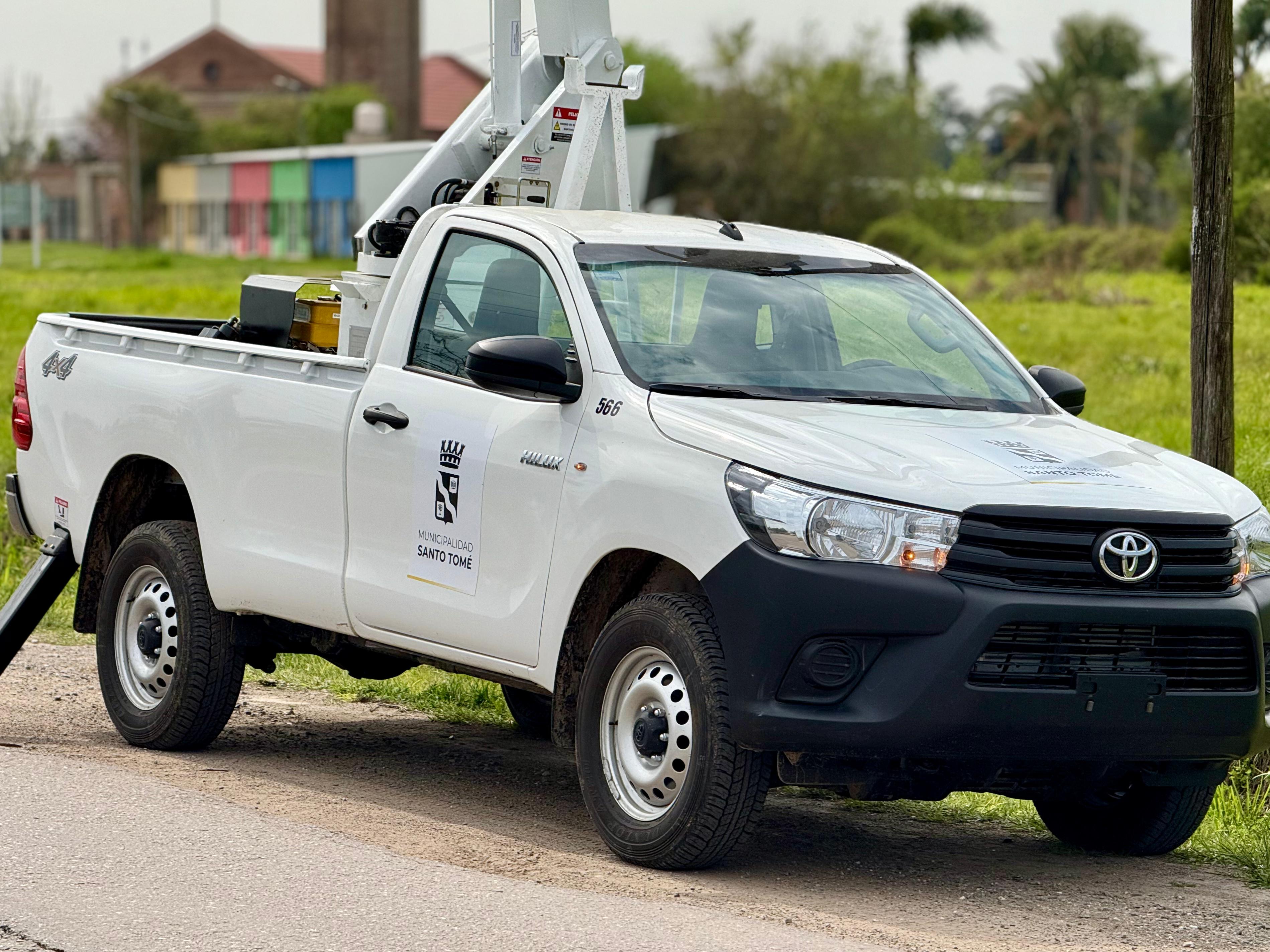 La Municipalidad concretó la incorporación de nuevo equipamientoa para mejorar la prestación de servicios públicos en la ciudad. Se trata de una camioneta Toyota Hilux 4x4, cabina simple, equipada con un hidroelevador con barquilla homologado, que permite alcanzar una altura de trabajo de hasta 11 metros.