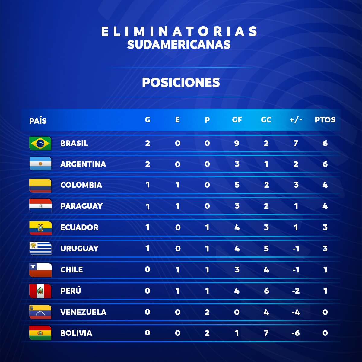 Brasil ganó gustó y goleó. Los de Neymar (autor este martes de un hat trick) apabullaron 5-0 a Bolivia en el debut y 4-2 a Perú en la segunda jornada. Sin embargo, el resultado más destacado fue el 2-1 de Argentina a Bolivia en La Paz, un terreno donde no ganaba desde hacía más de 15 años. El triunfo le dio al conjunto de Lionel Scaloni un respaldo generalizado luego de las dudas que había dejado el deslucido 1-0 sobre Ecuador en la presentación.