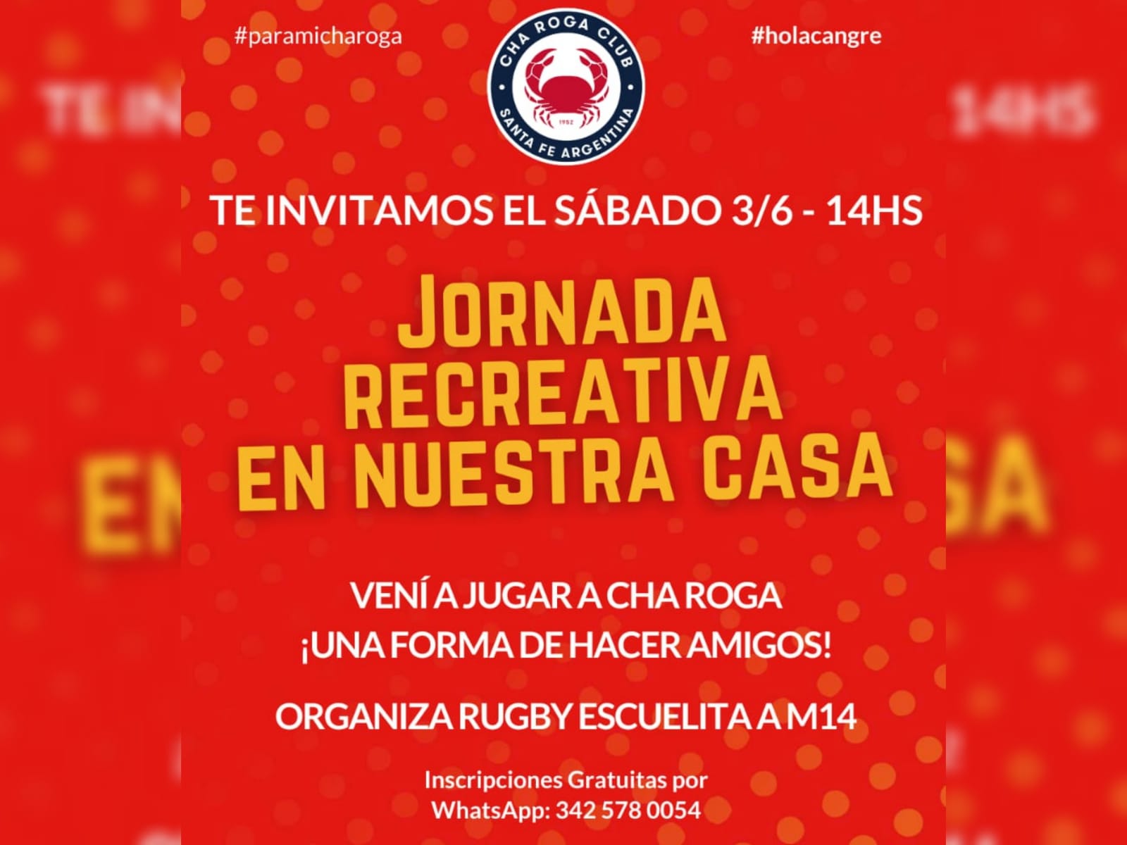 El Club Cha Roga será la sede de una jornada de esparcimiento y recreación que se realizará este sábado por la tarde. Con entrada libre y gratuita, la actividad comenzará a las 14 horas, se extenderá hasta las 17 y es organizada por la escuelita de rugby -masculina y femenina- de la institución.