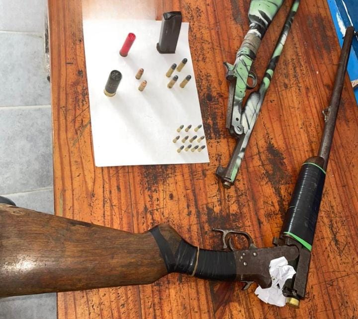 Según fuentes policiales, se incautaron una escopeta calibre 12/76, otra calibre 14 y varios cartuchos intactos compatibles con esas armas. Además, se procedió al secuestro de la motocicleta en la que circulaban los implicados.
