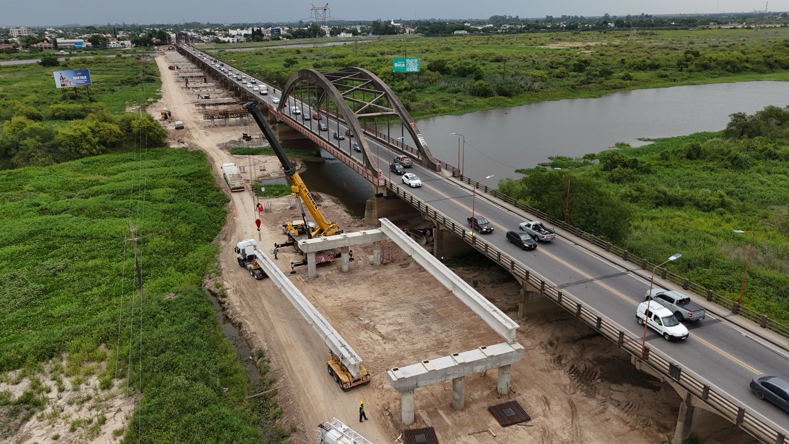 Comenzaron a colocar las vigas longitudinales del nuevo puente